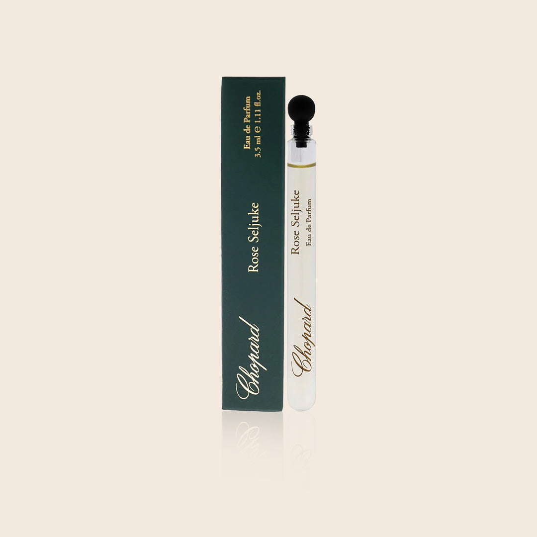 A royal, spicy rose scent with oud and saffron. Deep, sensual, and mysterious — this 3.5ml mini is the perfect introduction to Chopard’s opulent world of Middle Eastern perfumery.